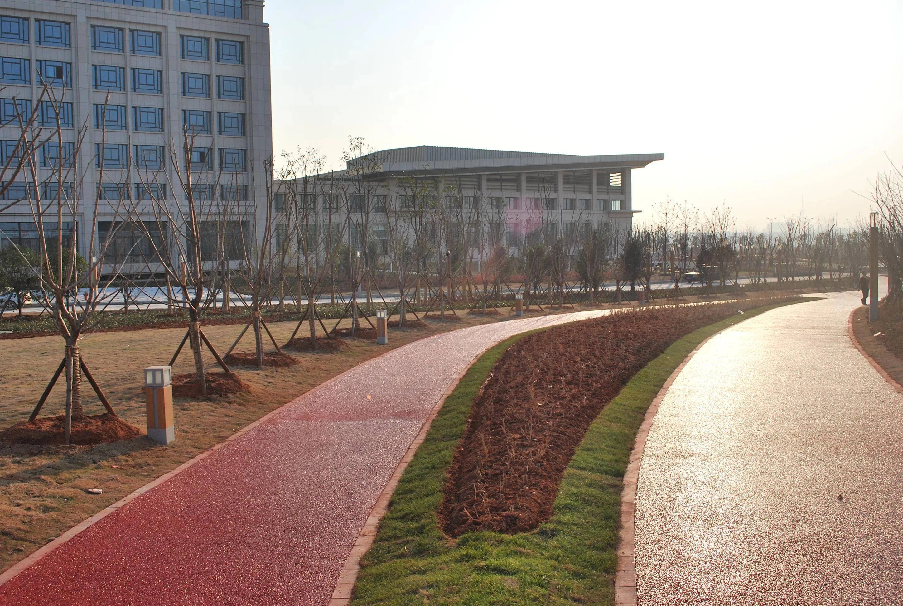 首先,透水混凝土地坪的多孔性能夠吸收和儲存雨水,使其能夠迅速滲透到地下。這種滲透過程有助于降低地表溫度,從而減輕城市熱島效應。由于城市建筑物和道路通常使用不透水的材料,這些材料會吸收并儲存熱量,導致城市氣溫升高。而透水混凝土地坪能夠將雨水迅速排入地下,減少地表熱量積聚,從而降低城市氣溫。